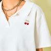 フェミニンさとカジュアル感を絶妙にミックスしたチェリー刺繍スキッパーニット