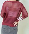 ざっくりとしたメッシュ編みで通気性も良く、程よい肌見せがヘルシーで今っぽい印象に。袖口にはラインが入っており、スポーツユニフォームのようなデザインが遊び心を演出。ドロップショルダーとゆるっとしたフォルムが、抜け感のある着こなしを叶えてくれます。