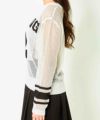 ゆったりとしたシルエットと大胆な透かし編みデザインが特徴で、レイヤード次第で季節を問わずロングシーズン楽しめる1枚です。フロントのナンバリングとロゴがアクセントになっており、ストリート感ある印象に。