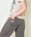 まるで手描きしたかのようなラフなイラストが散りばめられており、他にはない個性を演出できる一本です。ベーシックなデニムスタイルにユーモアとアート感をプラスしてくれるので、カジュアルコーデの主役アイテムとして大活躍間違いなし◎