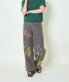 パンツ全体に施された落書き風のプリントは、ポップでありながらどこか抜け感のある仕上がり。キャラクターイラストなどがランダムに配置されており、見ているだけでも楽しくなるデザインです。程よいゆとりのあるストレートシルエットで、動きやすく快適な穿き心地もポイント。