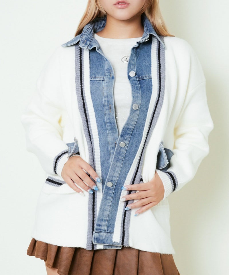 ニットの柔らかさとデニムのカジュアル感をミックスしたコンビジャケット。