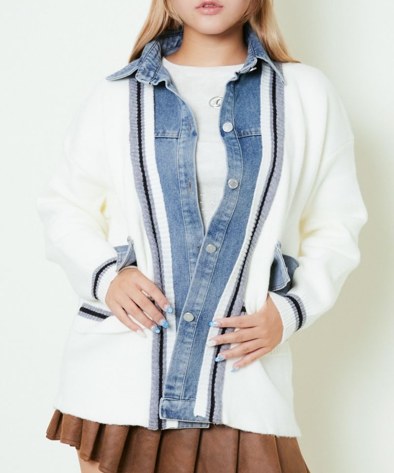 ニットならではの着心地の良さと、デニムディテールのアクセントで存在感抜群。