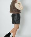 フェイクレザーのリッチな質感に、フロントジップを効かせたショートパンツ。