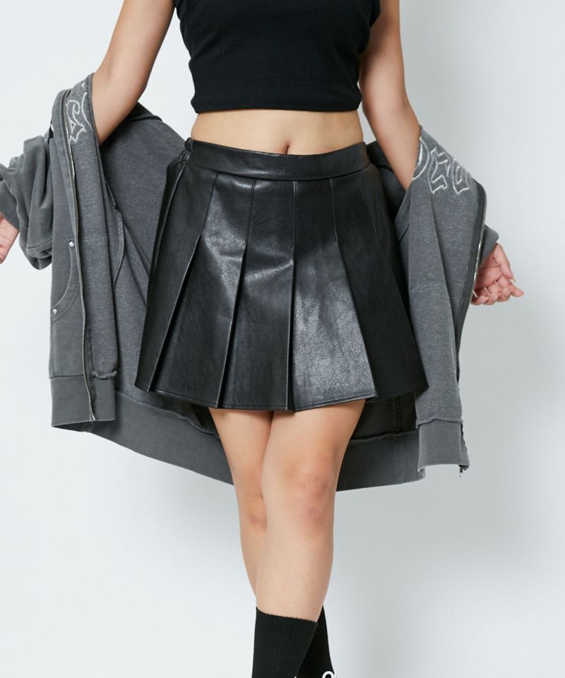 《ガーリーさとモード感を両立♪プリーツ入りレザーミニ》