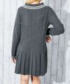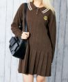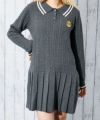 ケーブル編みのクラシックな表情に、衿付きポロデザインをプラスしたチュニックワンピ。胸元のワンポイント刺繍とプリーツ切替の裾デザインが、スクールライクな雰囲気を演出します。
