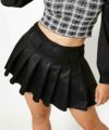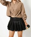 コーデの主役にぴったりなプリーツ入りのフェイクレザー風ミニスカート!