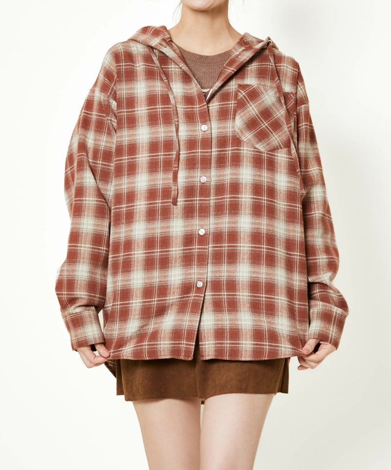 カジュアルなチェック柄とリラックス感のあるフードデザインで、1枚でも羽織りでも着回せます。