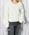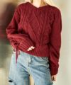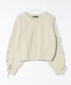 ふんわり柔らかなモールニットに、ケーブル編みをプラスした表情豊かなデザイン。袖に施したレースアップディテールがトレンド感を高め、フェミニンな印象を与えてくれる主役級ニットです。