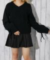 深めのVネックで顔まわりをすっきり見せつつ、程よいゆるさでリラクシーに着られるシルエット。袖のレースアップリボンが女性らしさを引き立て、1枚で映えるデザインに仕上げました。