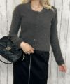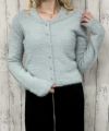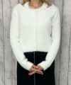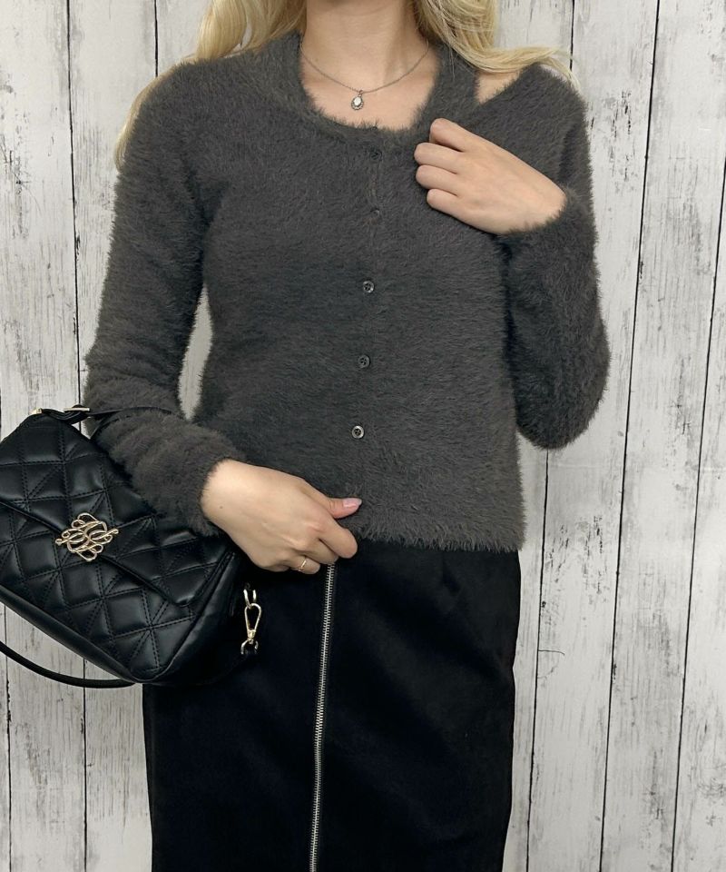 ふんわりとしたフェザー素材を使用した、カーディガン風ドッキングニット。
