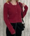 《ふわもこ質感で甘すぎない抜け感☆カーデ見えフェザードッキングニット》