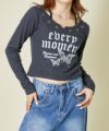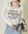 リブ素材の本体に、首元からのぞくストラップ風ディテールを重ね着風にあしらったデザイン。襟ぐりのハトメや緩やかなカーブラインが、ほんのりエッジを加えつつ女性らしさもキープ。程よく体に沿うシルエットで、すっきり見えするのもポイントです。