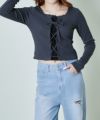 繊細なレースがチラッとのぞく胸元に、リブ素材の柔らかさが絶妙にマッチ。レースアップデザインが立体感を出し、コーデの主役として存在感しっかり。ボディにほどよくフィットするシルエットで、上品さも抜け感も欲張れる一枚です。