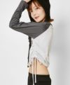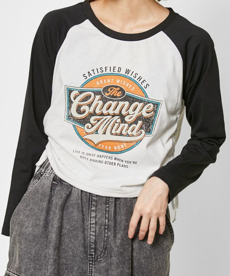 配色ラグラン袖とサイドのドロストデザインがアクセントになった《長袖カットソー》?