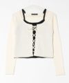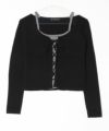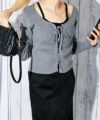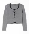 リブ編みのスリムシルエットに、胸元のレースアップでアクセントをプラス。インナーを重ねたようなフェイクレイヤードデザインで、コーデに奥行きを出してくれます。