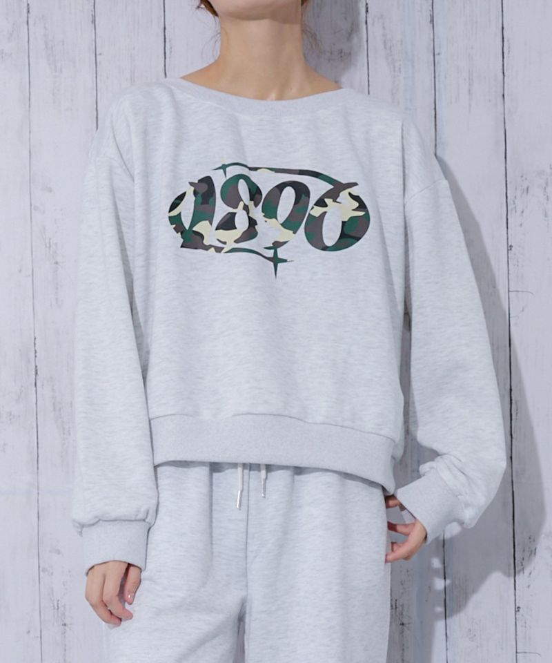 フロントに存在感抜群のカモフラ柄ラバープリントを施した、トレンド感たっぷりの裏毛クルーネックトップスです。