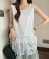 表情のあるテレコ素材に繊細なレースをたっぷり重ねた、フェミニンムード満点のペプラムタンク。1枚で着映えするデザインで、いつものコーデをぐっと華やかに格上げしてくれます。