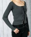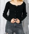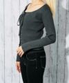 フィット感のあるリブニットに、フロント編み上げデザインを効かせたトレンドトップス。