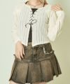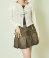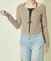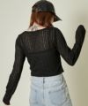 上身頃は程よく透け感のあるシアー素材にワイドリブを組み合わせた、立体感のある編み上げ仕上げ。下にはキャミソール風パーツがドッキングされていて、インナー要らずでレイヤードスタイルが完成します。絶妙な丈感とシルエットで、スタイルアップ効果も◎