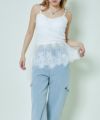 繊細なレースとやわらかなカット素材が組み合わさった、上品フェミニンなキャミソール。パッド付きなのでインナーに悩まず、さらっと1枚で着られるのが嬉しいポイント。透け感やフィット感にこだわった、夏の着こなしに欠かせないアイテムです。