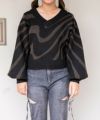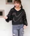 ゼブラ調のモノトーン柄がコーデの主役になる、存在感たっぷりのVネックニット。