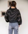大胆なゼブラ柄を編みで表現し、スタイリングにアクセントをプラス。