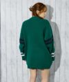 胸元の立体ワッペンと袖のラインがポイントのニットカーディガン。