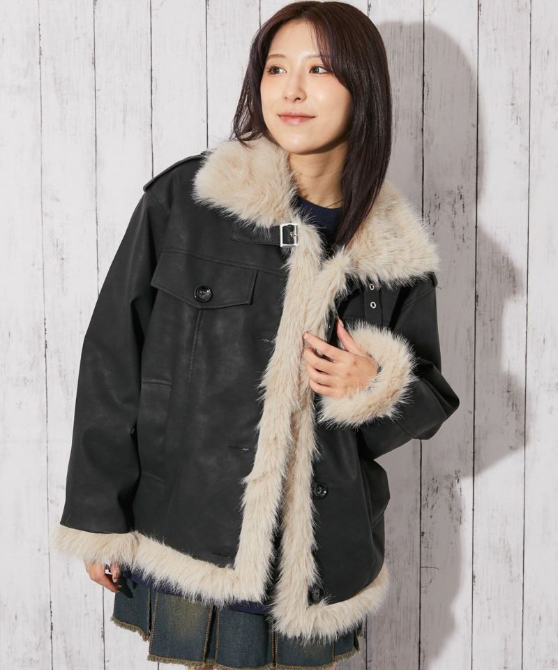 なめらかなフェイクレザーにふわふわのファーをあしらった、