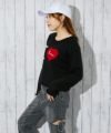 フロントに大胆なハートロゴを施した、存在感のあるデザイン。