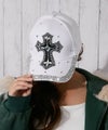 つば・フロントに散りばめたストーンが光をキャッチし、立体的なクロスモチーフがアクセント。