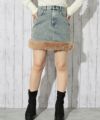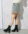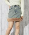 ヴィンテージライクなウォッシュ加工デニムに、裾ファーをドッキングしたデザインスカート。
