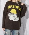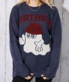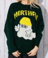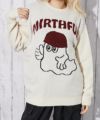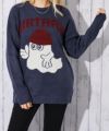 ニット帽をかぶったゆるかわおばけが目を惹く、遊び心たっぷりのデザインニット。