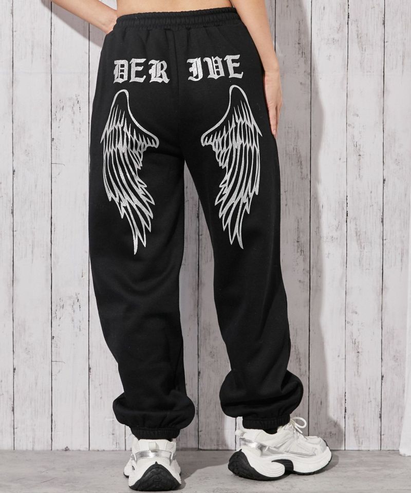 “羽ラメプリント・裏起毛・スウェットパンツ・ストリート”
