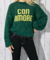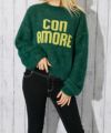 毛足の長いフェザーニットがシーズンムードを一気に高めるロゴニット。