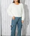 《フェザー×ショート丈》レディース ニットプルオーバー 長袖