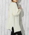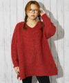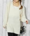 ふんわりブークレ素材とバックリボンデザインで、フェミニンさを引き立てるチュニックニット。