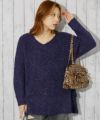 深めのVネックが顔まわりをすっきりと見せ、女性らしい印象に。