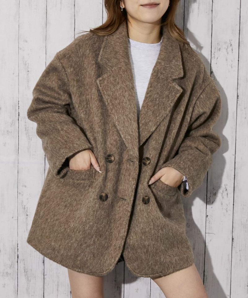 ふんわりとしたシャギー素材が魅力のハーフ丈コート。