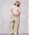縦ラインを強調するカットプリーツ加工が印象的なワイドパンツ。
