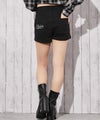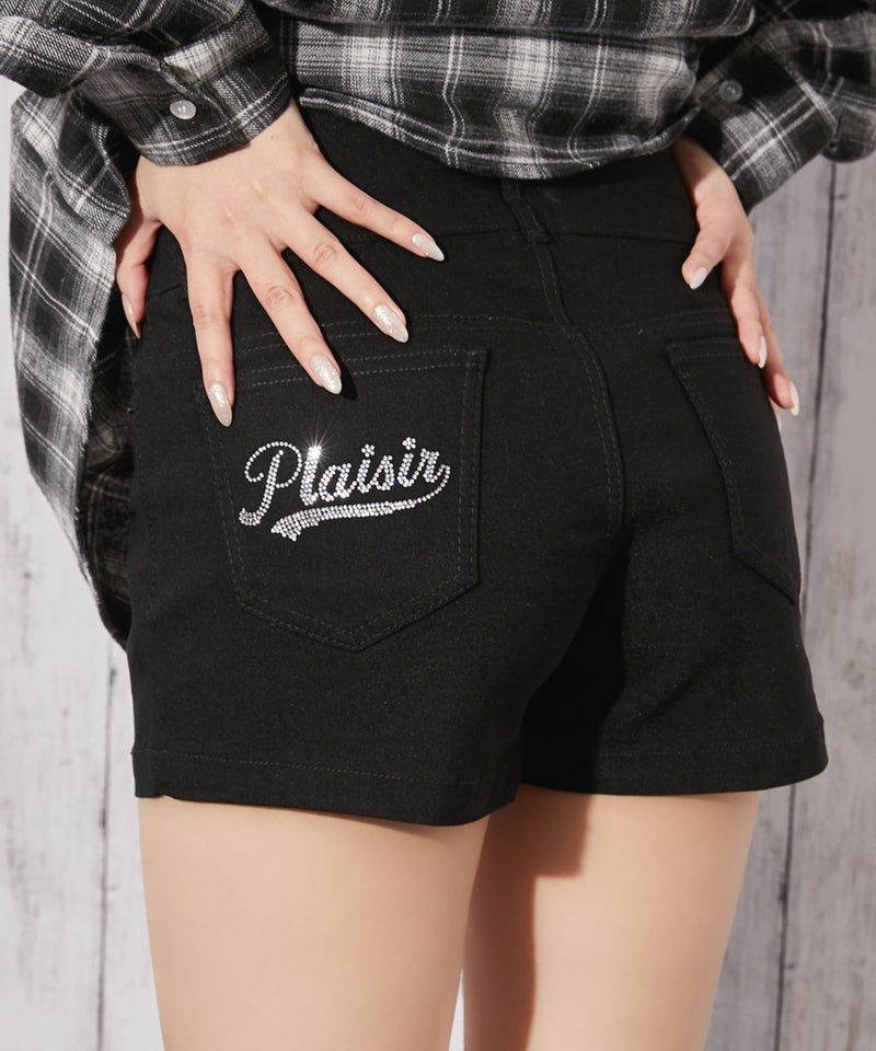 バックポケットにあしらわれたラインストーンロゴが目を惹くショートパンツ。