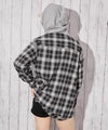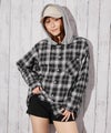 チェック柄シャツにフードを組み合わせた、カジュアルムードたっぷりの一枚。