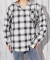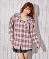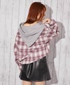 《フード付きでラフ感プラス チェック柄カジュアルシャツ》
