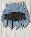 アシンメトリーな裾ラインが特徴的なデニムミニスカート。