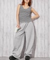 縦ラインを強調するリブ素材が、すっきりとした印象を演出します。