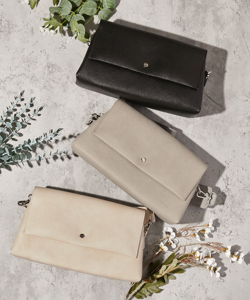 《高見えシボ合皮×スクエアデザイン ショルダーバッグ》