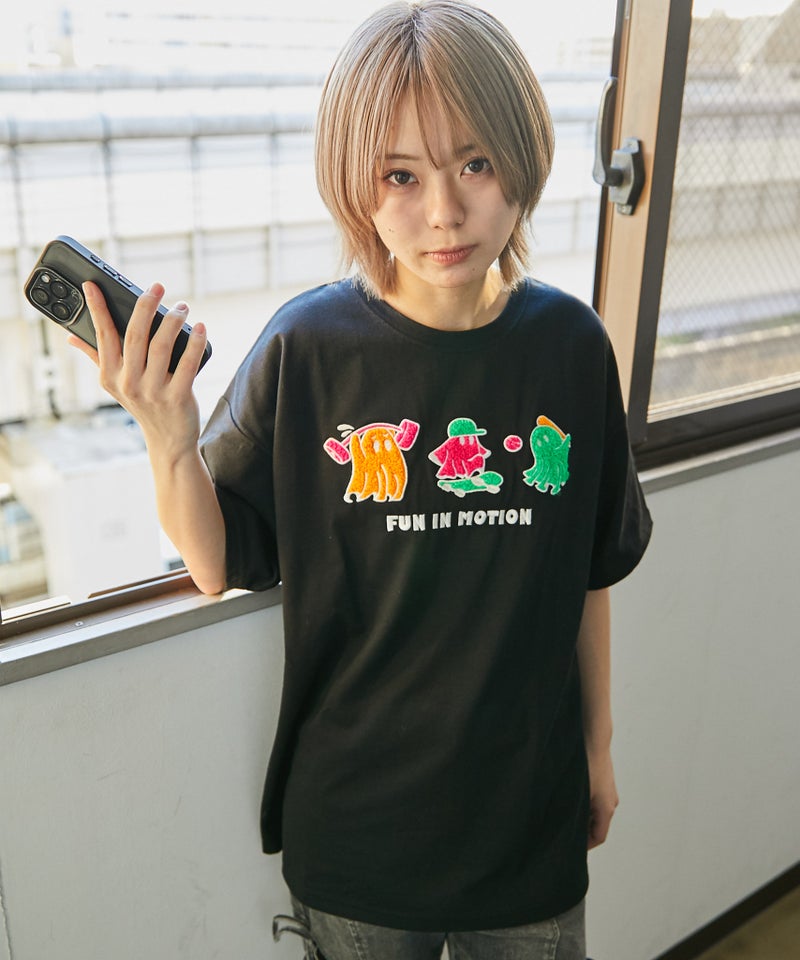 《おばけキャラクター×サガラ刺繍が目を惹く ビッグシルエットTシャツ》