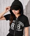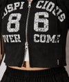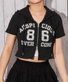 《クロップド丈×カレッジロゴでY2K映え ダブルZIPパーカー》