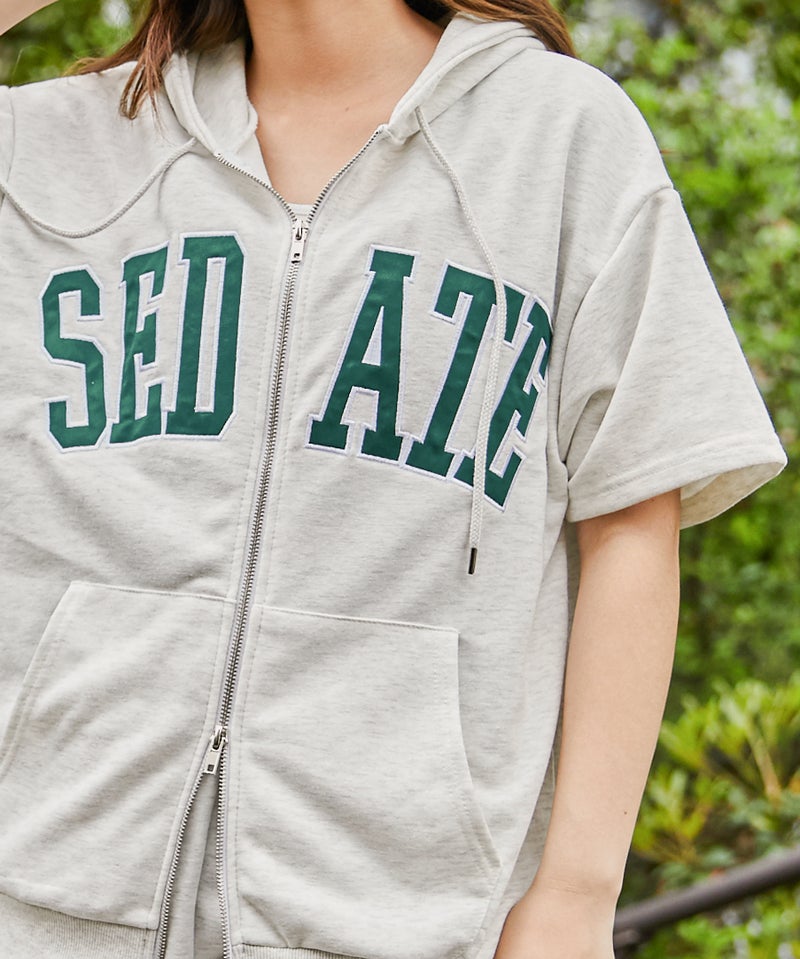 《カレッジロゴ×オーバーサイズで旬見え 半袖ZIPパーカー》