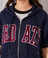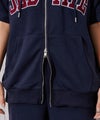 フロントに大胆に入ったカレッジロゴとナンバリングが目を惹く半袖ZIPパーカー。